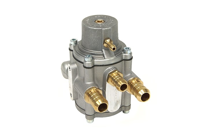 El reductor de presión convierte el GLP líquido proveniente del depósito, en GLP vaporizado a una presión compatible al del funcionamiento del motor del vehículo (1,0 ± 0,1 bar). El reductor está equipado de una válvula de seguridad que se activa cuando la presión dentro del reductor es superior a 6 bar. Anterior al reductor se instala una electroválvula que interrumpe el flujo de GLP al reductor cuando el motor está parado, en gasolina o cuando la temperatura del reductor no es suficiente para asegurar la vaporización. De hecho, para compensar el enfriamiento causado por la expansión del líquido GLP, el reductor se calienta por la circulación en el interior del refrigerante líquido retirado del circuito de refrigeración del motor. La temperatura de funcionamiento del reductor con el fin de tener una adecuada vaporización del GLP es de al menos 30 ° C.